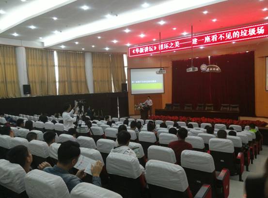 10月18日下午2点,华新讲坛《循环之美:建一座看不见的垃圾场》公益讲座在西河校区学术报告厅如约而至,本期讲座由图书馆、经济管理系联合举办,绿色地球CEO汪剑超先生受邀担任演讲嘉宾,参加本次讲座的有电子商务专业肖红波老师、市场营销专业杨曼琳老师及200余名同学。