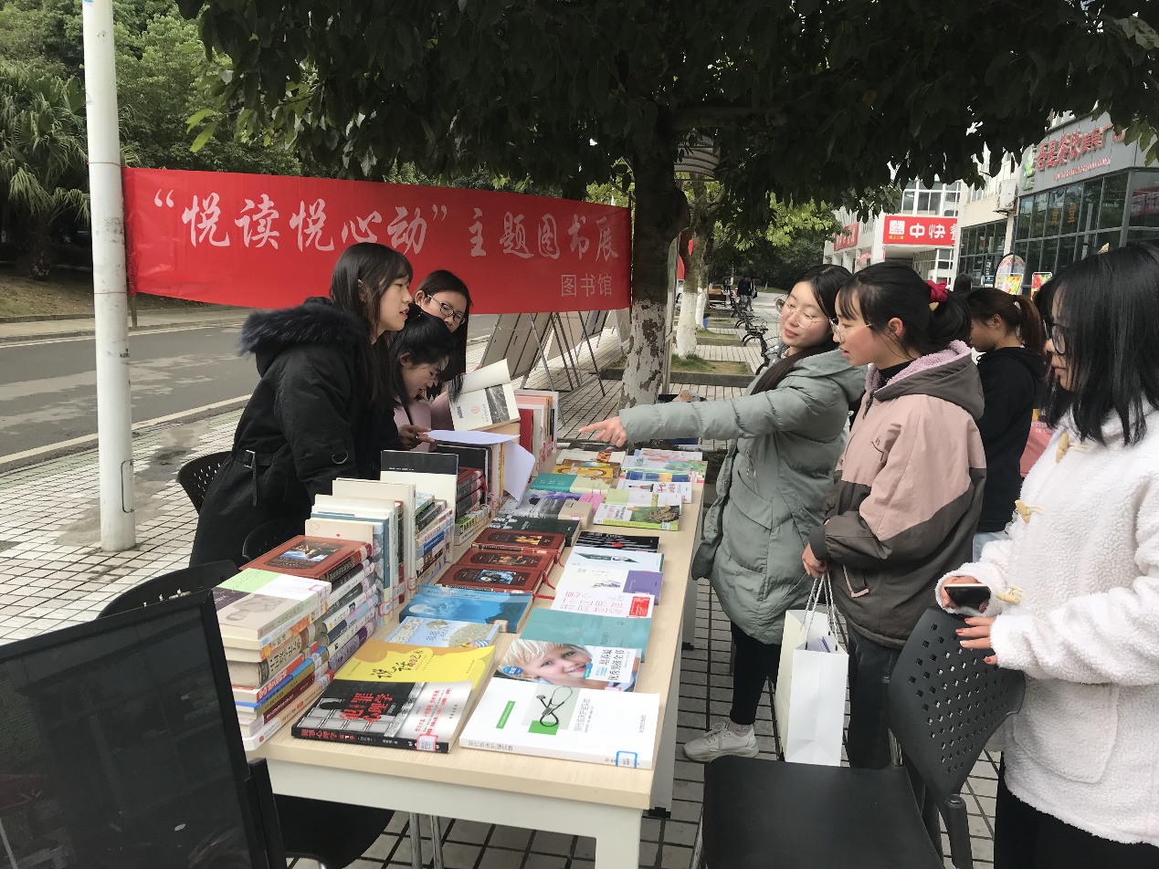 为倡导“全民阅读”精神、助推学院“三风建设”,营造浓厚的校园文化氛围,丰富读者的精神世界,图书馆于11月23日——25日在网红食堂对面举办了“悦读悦心动”主题书展活动。