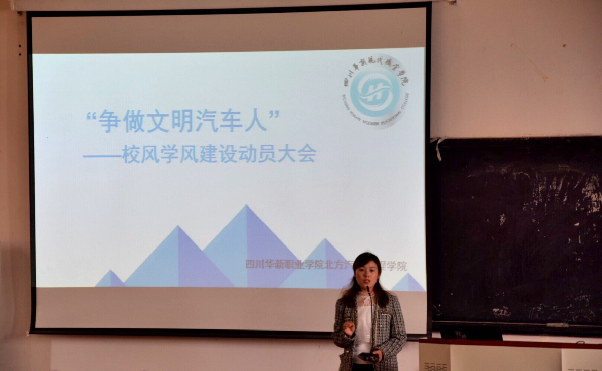 为深入贯彻立德树人的教育方针,落实学校“厚德 励志 精技 笃行”的校训精神,进一步优学院内部育人软环境,净化学生思想,增强学生文明意识,养成文明的行为习惯,形成良好的校风、教风、学风。2018年10月30日中午,北方汽车工程学院在机投校区阶梯教室召开了“争做文明汽车人——校风、学风建设动员大会”,全院辅导员、学生干部、各寝室室长参加。此次活动正式拉开了北方汽车工程学院校风学风建设专项行动的序幕。