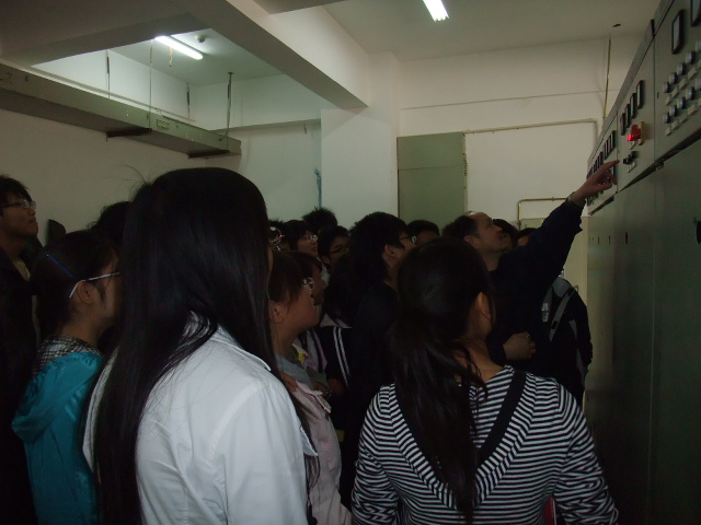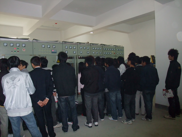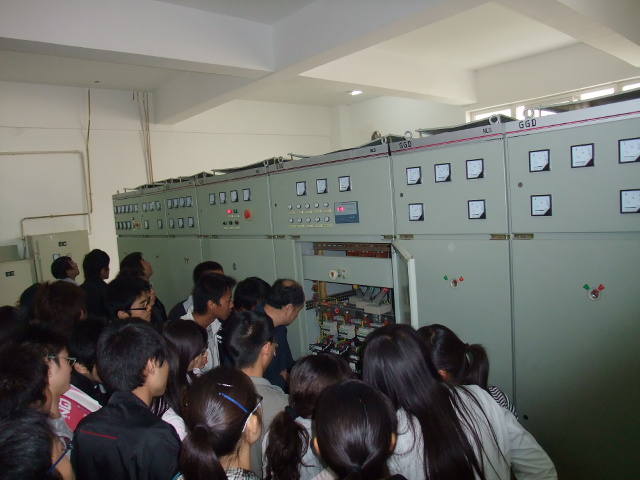 加强实践性教学环节是职业教育的重点,应用技术系各专业教学过程更离不开实践实训部分,要做好实训环节的建设,就必须循序渐进,从多方面加强学生的应知应会,3月19日,担任我系应用电子专业《电工技术实训》课程的教学及实训指导教师杨西平老师,秉着能让学生在接收理论的同时了解实物、注重实际应用,积极和学院物业管理中心联系并得到物业管理中心的支持,组织我系08应用电子专业学生对我校输配电及相关配套设施进行了实地参观学习。同学们对实地参观表现出了极大的热情,首先杨老师和配电房工作人员对配电房安全规定及参观注意事项逐一对学生说明,确保安全第一,现场同学们都能有序地进行参观,他们在认真听取杨老师及配电房工作人员讲解的同时,也能把理论上不清楚或不懂的问题提出来,在实物面前,杨老师都一一作答,同学们通过参观更进一步的了解了所学知识,虽然参观只有短短的半个多小时,但结合实际,把实物引入课堂的教学形式却起到了较好的效果。为这门课程后续在实验室动手操作打下了一定的基础。