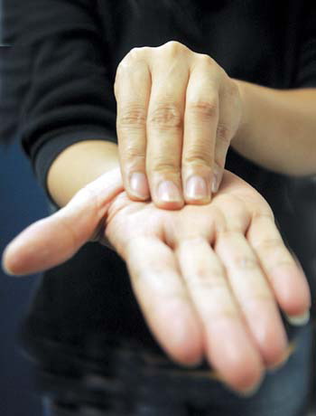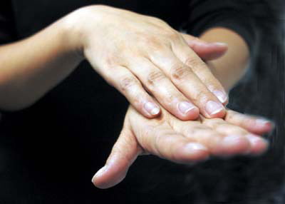 3、小心地双手相互擦手心、手背、指甲内外和四周、指尖、虎口位置,最少揉搓10秒钟才冲水。