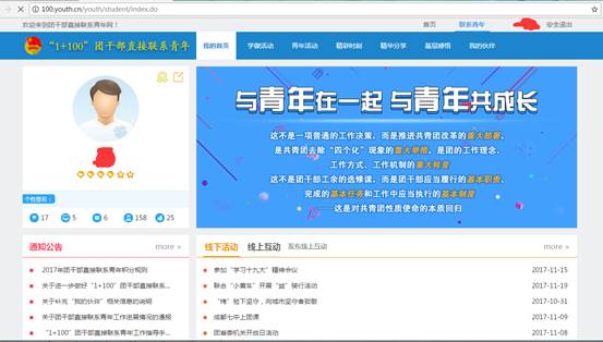 近期,团中央对“1+100”团干部直接联系青年网站进行了升级改版,对团干部直接联系青年工作提出新部署,为深入贯彻落实团中央、团省委关于“1+100”团干部直接联系青年工作,使团组织深深根植青年,特作如下通知。