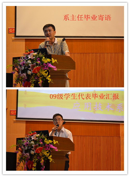 “炫舞青春 闪动年华”。6月27日,应用技术系欢送2009级毕业生典礼在学术报告厅隆重举行。晚会特邀请我系系主任石平、办公室副主任陈春艳与蜀绣大师尹嘉伟和汽修大师胡光喜以及各级辅导员等嘉宾参加本次毕业欢送晚会。