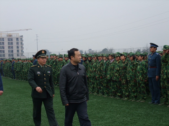 李院长在汇报演出总指挥管的陪同下慰问同学们