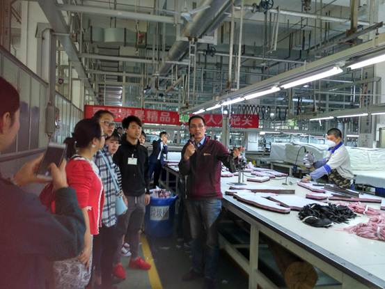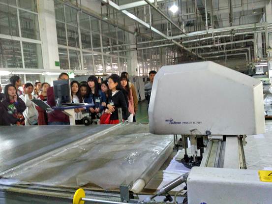 公司的人力资源的周经理亲自接待了师生们。他从介绍企业文化入手,带领大家到车间参观了先进的电脑自动化裁床及流水线生产的所有制作流程,给学生讲解了每一道工序的工作原理。