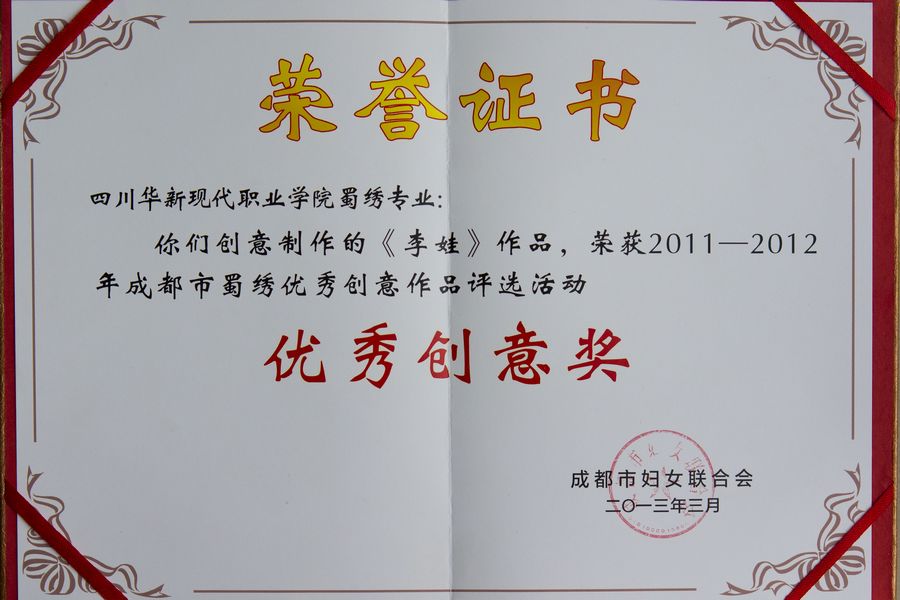 获奖:成都市首届蜀绣优秀创意作品评选活动优秀创意奖