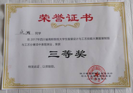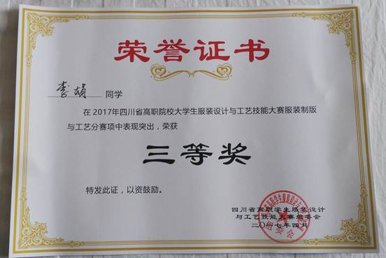 本届大赛在成都纺织专科学校举办,学院派出5名同学参加服装制版工艺分项比赛。选手们从服装立体裁剪到服装工业样板的制作与裁剪,最后是成衣制作。经过10个小时的激烈角逐,我院学生陈旭兰荣获二等奖,李娟和代湘分别荣获了三等奖,为学校赢得了荣誉。
