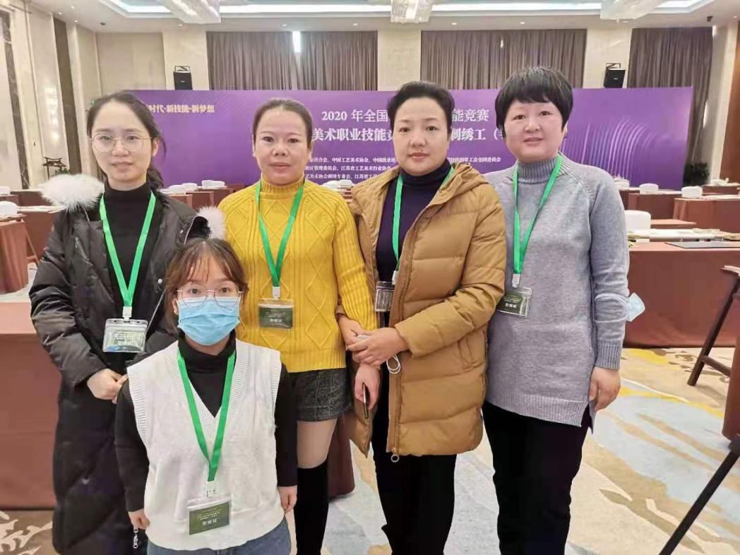 应用技术学院刺绣设计与工艺(蜀绣)专业教师胥一兰、学生黄心雨入选四川省工艺美术行业协会代表团并参加此次竞赛,与来自全国刺绣行业的同仁相互切磋学习。竞赛分理论考试和实操考核两部分组成。通过两天的激烈角逐,教师胥一兰在此次国赛中取得第29名的好成绩,荣获“工艺美术技能能手”称号。