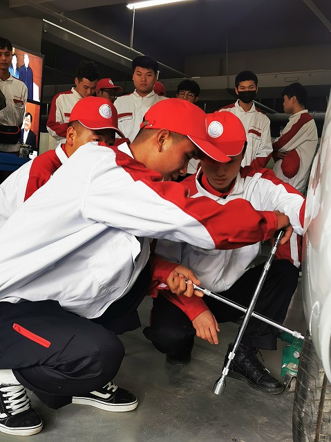 首场比赛是“汽车轮胎拆装大赛”,22支参赛队、60余位参赛选手早已摩拳擦掌、跃跃欲试。当比赛的口令一发出,各支队伍轮番登场,选手们通过正确检查现场、放置千斤顶,卸胎、轮胎外观检查、装回、整理工具等工序,展示自己的专业操作技能,使整个比赛好中求快。