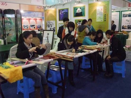 第七届穗港澳蓉青年技能竞赛,15 ,16日在世纪城新国际会展中心隆重举行。在我院服装设计专业(蜀绣方向)学科带头人郝淑萍大师,以及任课教师吴玉英大师的带领下,我院蜀绣专业2010级学生的参加了此次活动的蜀绣项目展示,并获得与会领导和专家们的一致好评。