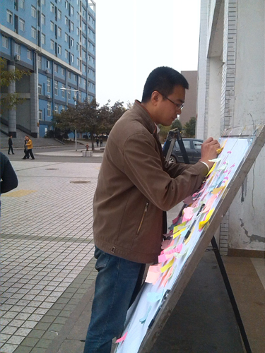 本次活动分为图片展览与同学寄语两个方面。一系列的图片展示与语言解说,直观的为我院学生展示了现今生活环境,也侧面反映了保护环境的重要性。信息工程系党委书记李松波也来到活动现场,并在心愿展览板上写下了寄语。