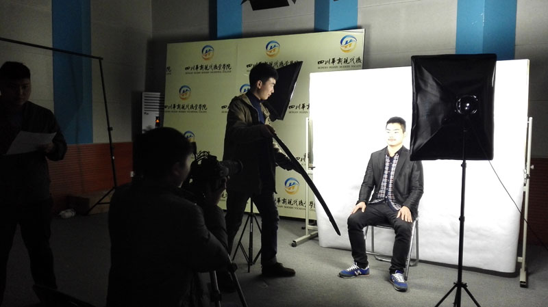 12月23日下午3点,由我系承接学院教务处的“普通话证件照拍摄”工作第一期49人的照相任务已在校园电视台演播室顺利完成。学院普通话考试参加人数多,拍摄时间紧,任务重。为了顺利完成本期拍摄工作,校园电视台提前安排了8名同学参加拍照辅助,并按照相辅助、相片处理、照片归档、秩序维护等进行了分工。经过大家的共同努力,本次49人的拍摄任务顺利完成。