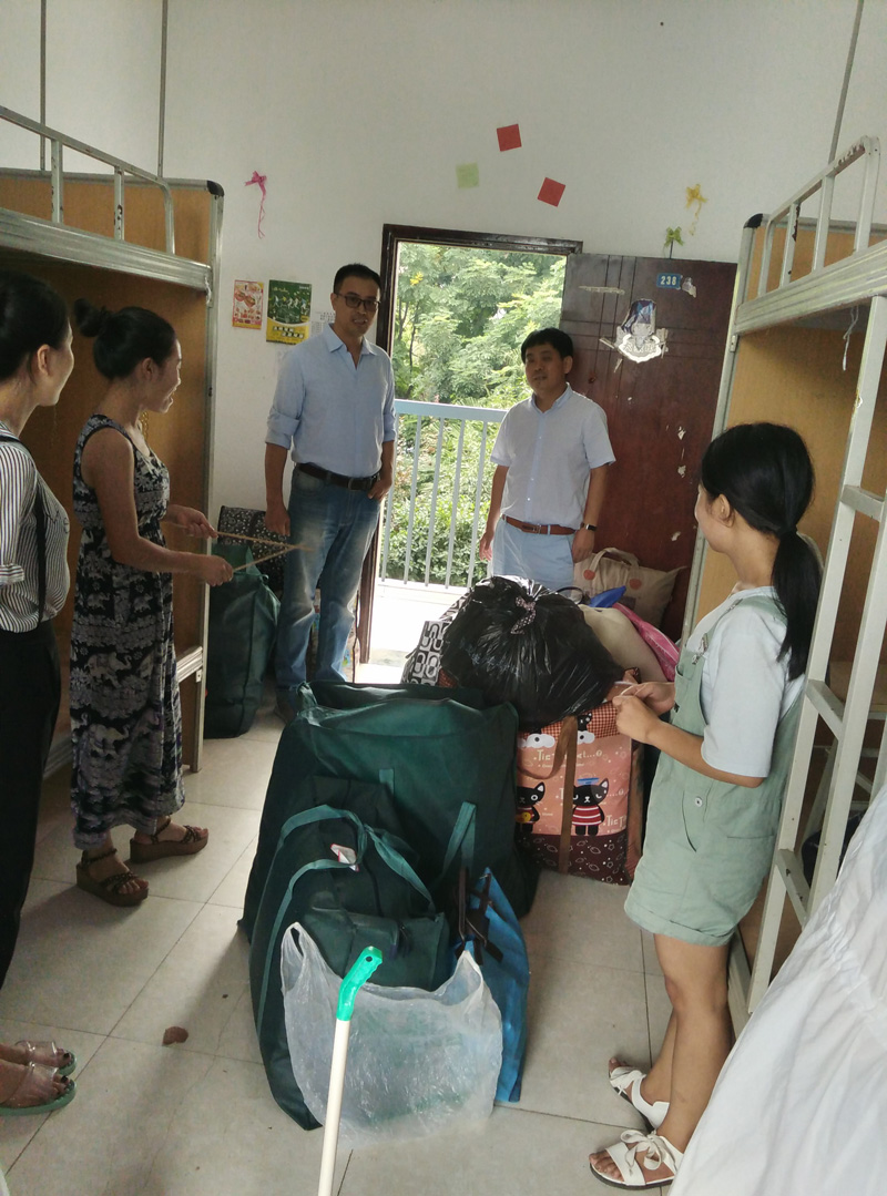 周勇主任、李松波书记和张启才老师一起,随同学生来到寝室,查看了学生寝室设施的安全情况。我系领导们首先欢迎了同学们的到来,并希望同学们能尽快适应生活环境的转变,安排好学习与生活。