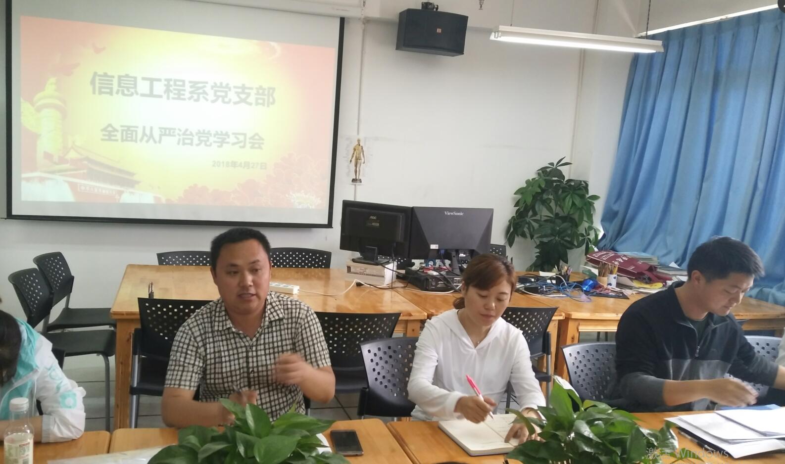 4月27日下午,信息工程系互联网学院全体教职员工在综合楼304楼召开2018年4月全体例会。信息工程系党支部书记杨敏主持会议,信息工程系互联网学院全体教师参加了此次会议。会议主要围绕党风廉政建设、教务教学工作及学生活动工作展开。