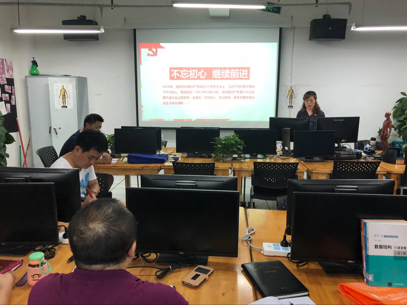在中国共产党成立97周年之际,结合学院改革发展实际,信息工程学院支部书记杨敏同志以学习习近平新时代中国特色社会主义思想为题,于2018年6月29日下午在综合楼304为支部全体党员讲授了《不忘初心勇担当 牢记使命迎未来》为主题的党课。