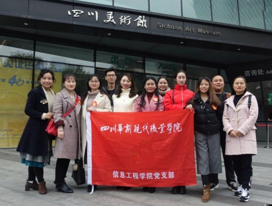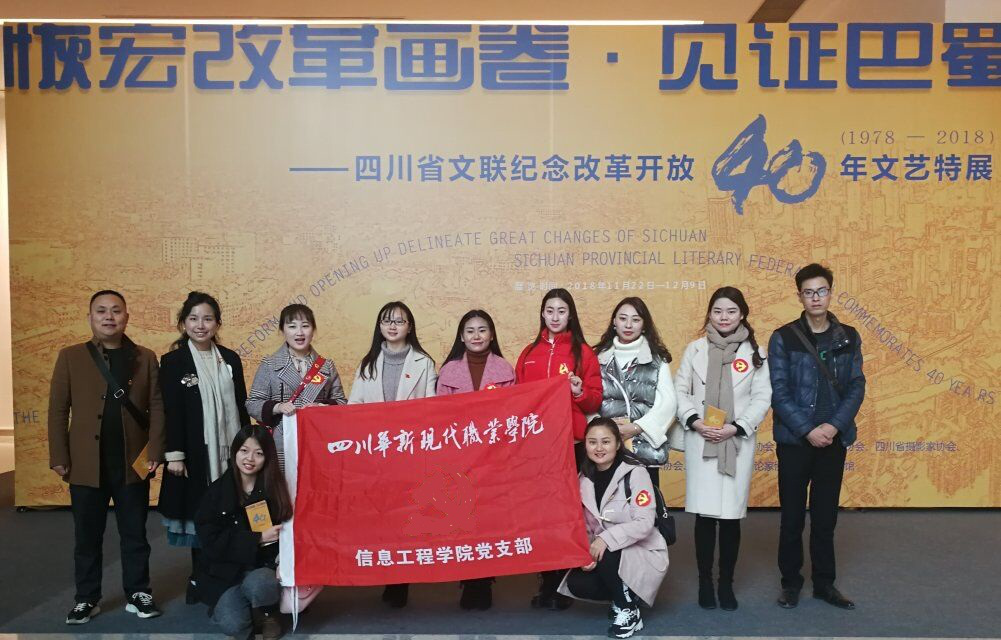 2018年11月29日下午,信息工程学院党支部书记李凡,党支部副书记张启才及全体党员同志一行到四川美术馆开展《恢宏改革画卷·见证巴蜀巨变》主题党日活动,参观四川省文联纪念改革开放40年文艺特展。