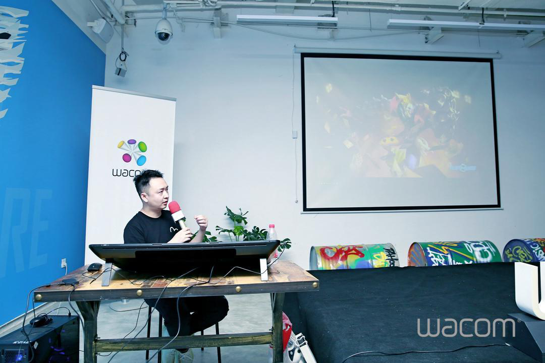 下午两点分享会正式开始,首先由WACOM中国区成都公司总经理发表讲话,提到了近期游戏行业的发展与变化。流量红利的消失成为游戏行业的瓶颈,市场对游戏的品质提出了更高的要求,游戏厂商积极求变,更多游戏厂商开始投入3A游戏的开发中,旨在打造更高质量的产品。本次分享会旨在为成都游戏圈提供一个交流平台,聚集更多对3A感兴趣的同仁碰撞出不一样的火花。接下来介绍了今日参与分享会额主要嘉宾:张路野、Chin Tin、温柔一刀以及邓春燕。