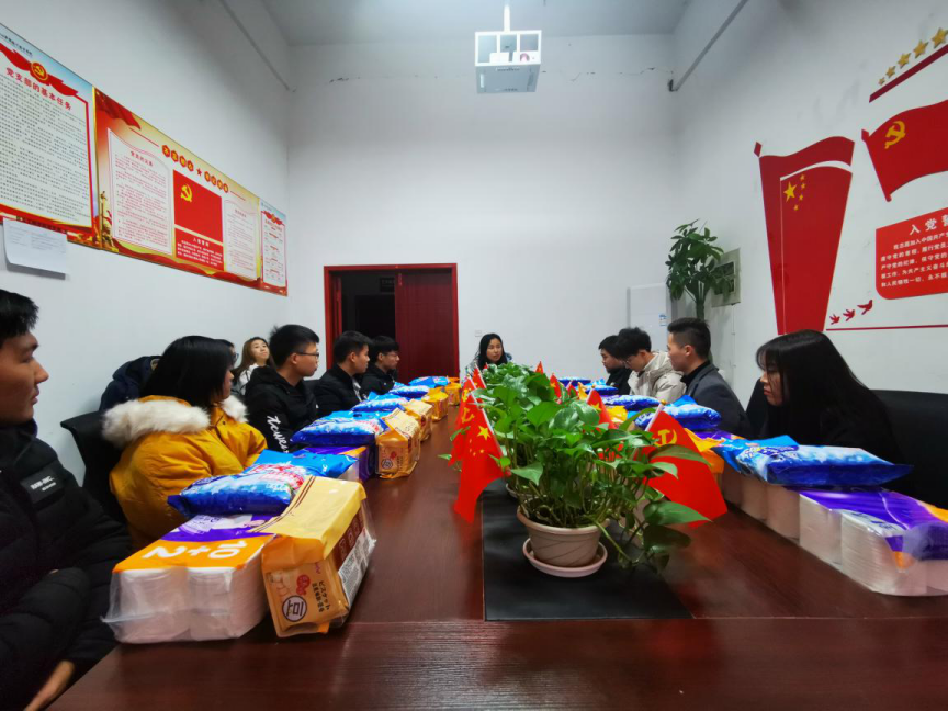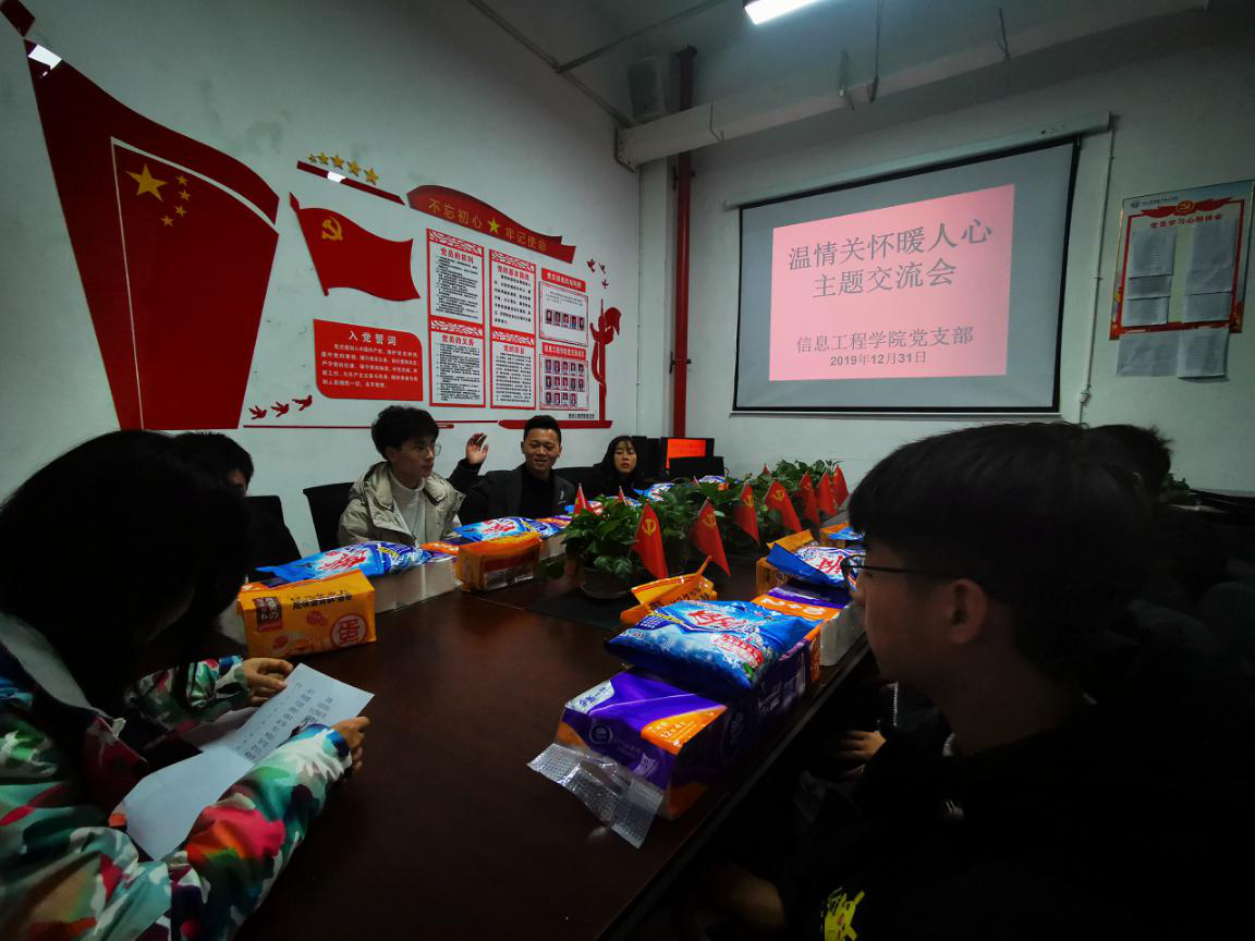 12月31日中午,信息工程学院党支部书记李凡带领学院辅导员,在明德楼111会议室,对学院经济困难学生开展“温情关怀暖人心”元旦节前送温暖慰问活动。