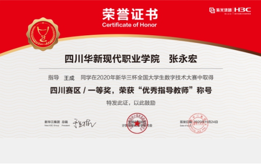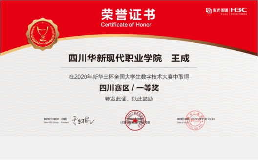 信息工程学院学生参加2020新华三杯全国大学生数字技术大赛预赛获四川赛区一等奖