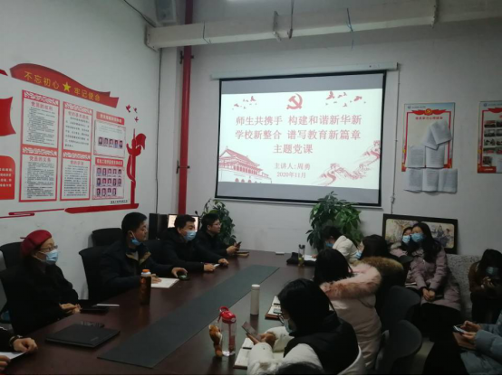最后,李凡书记对周院长的党课做了总结,她指出,周院的党课内容很充实,讲解得也很全面、到位,特别是以身边的具体事例为我们具体阐述了“十三五”目标的完成情况,以及未来“十四五”时期我国将面临的困难与挑战,是一次意义深刻的主题教育党课。全校党员同志要认真学习领会周院的党课精神,将思想与行动统一到国家建设、学生教育及学校发展上来,统一到践行“不忘初心、牢记使命”主题教育的目标任务上来,认真工作,谱写华新教育新篇章!