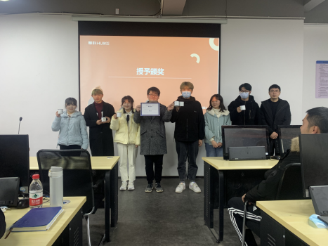 2021年1月8日上午在实训楼203B教室,19级大数据专业1、2班开展了腾讯云大数据学院的大数据综合项目答辩。出席答辩的领导有信息工程学院副院长邓先春院长,专业教师钱倬老师,迅腾项目负责人李姣姣老师,慧科集团专业讲师赵仕成,石嘉懿,以及慧科集团华新运营中心包括赵凯琪老师在内的三位老师。在答辩过程中,老师们通过每组队伍的项目展示,最终在十一组队伍中选出了前三名,并为其颁发了获奖证书和奖品。