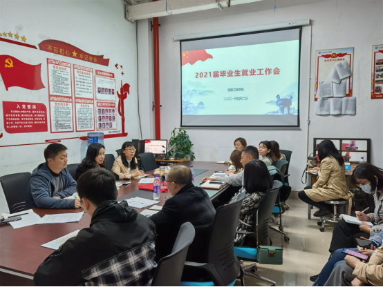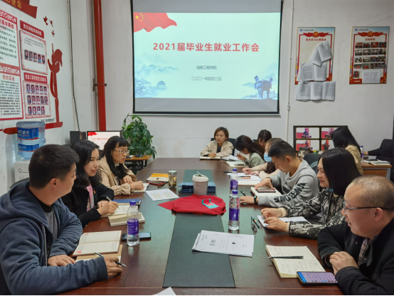 随后,会议对信息工程学院今年的就业工作作出安排。李凡同志强调着重做好网上就业宣讲动员会、专升本、应征入伍、就业心理咨询、就业岗位搜寻等工作,加大就业工作宣传力度,做好特殊学生一对一帮扶。要求辅导员和毕业涉及指导教师加强对学生的沟通,做到精准细分类就业状态、快速将实习转就业、匹配高质量就业资源、凝练核心特色亮点,扎实做好常态化数据核查方面提出工作要求。孙继荣院长就2021年就业工作提出具体要求,她表示就业工作必须提高站位、强化责任、紧盯底线目标,要用好政策抓住机遇,打造名优企业合作,克服一切困难创新方法精准服务。她强调就业工作必须做到全员参与、全员联动、全面指导、全面服务,真抓实干,千方百计抓好就业工作。全体教职工表示,将高度重视、全力以赴做好2021届毕业生的就业工作。