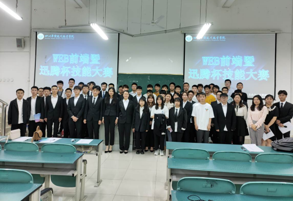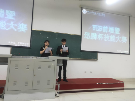 为响应学院“竞赛月”活动,庆祝中国共产党成立100周年,提高学生的专业技能,增强同学之间的团队协作意识,信息工程学院于2021年5月26日16:10-20:20在知行楼101举办了Web前端大赛暨迅腾杯技能大赛。