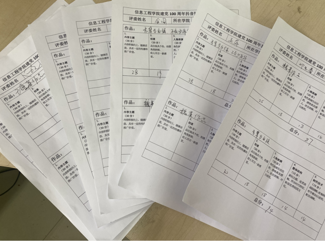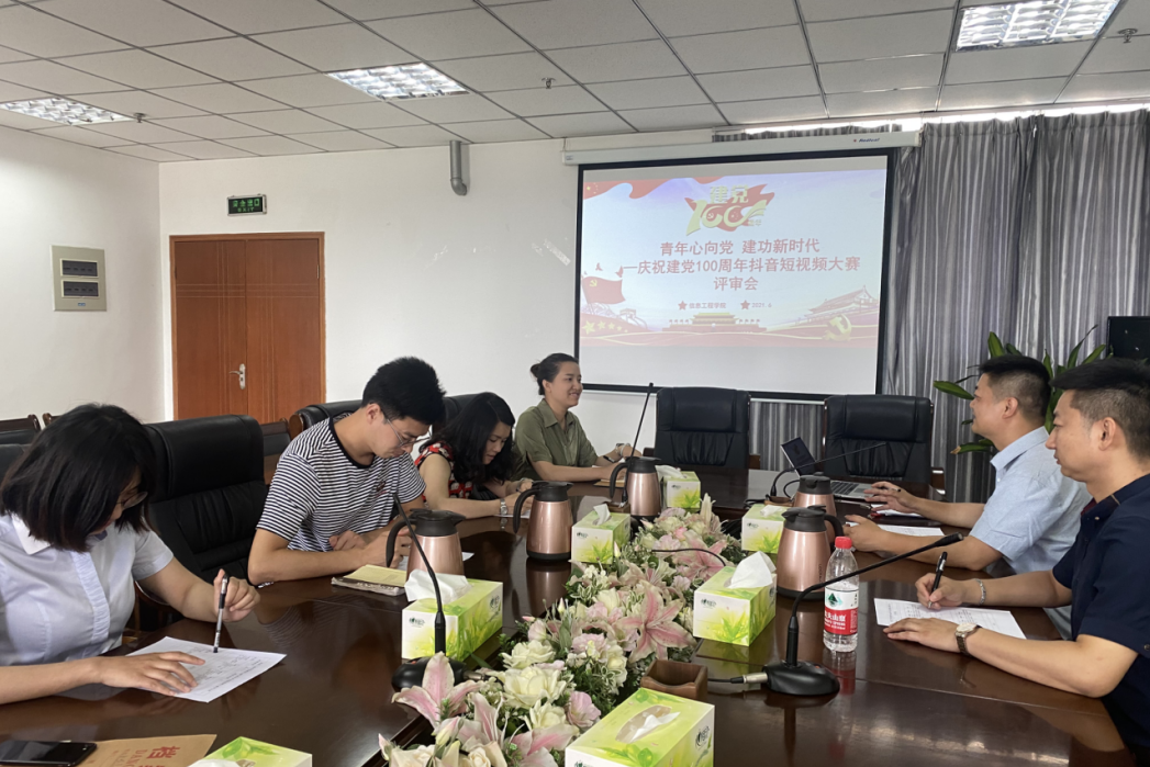 2021年6月15日,在学院626会议室举行了作品评审会,此次评审会邀请到学院办公室吴萍、院团委金园、信息工程学院副院长邓先春、信息工程学院教师齐乃庆、陈潇、吴晓丽、向元担任评委,经过评选共产生一等奖两名,二等奖三名,三等奖四名。