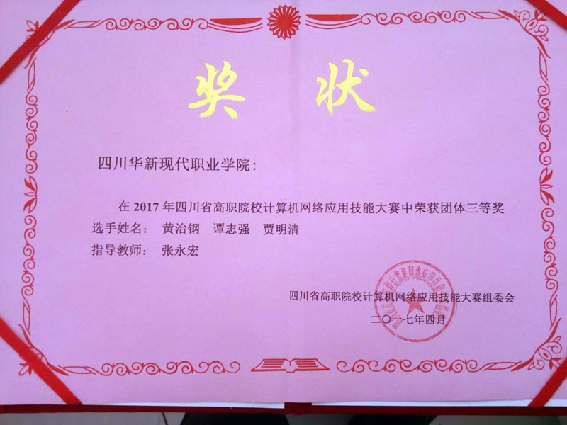 信工学子敢于亮剑在2017四川省高职院校计算机网络技能大赛中获得团体三等奖