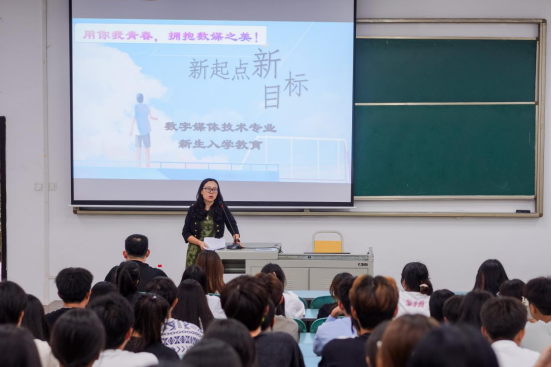 9月18日下午16点30分,计算机与大数据学院数字媒体技术专业在博学楼103召开本专业新生入学教育暨专业认知教育。参加本次新生入学教育的有计算机与大数据学院院长孙继荣、副院长邓先春、党支部书记万绪林、华潮众娱文化传媒有限公司总经理花冠南、运营总监李欣、数媒专业新生辅导员孙京蕾、数媒专业负责人袁娜、22级优秀学生代表,本次专业认知教育由袁娜老师主持。