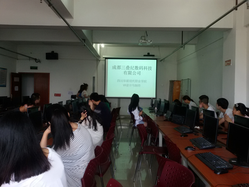 2017年6月20日,信息工程系2015级计算机多媒体技术专业全体同学在综合楼301实训室参加了由“VR设计与交互制作”专业见习。本次专业见习邀请到了成都三叠纪数码科技有限公司的技术人员参与指导。其主要目的是为了让同学们理论联系实际,学以致用,在熟练技能的同时,将所学应用到行业实际需求中。