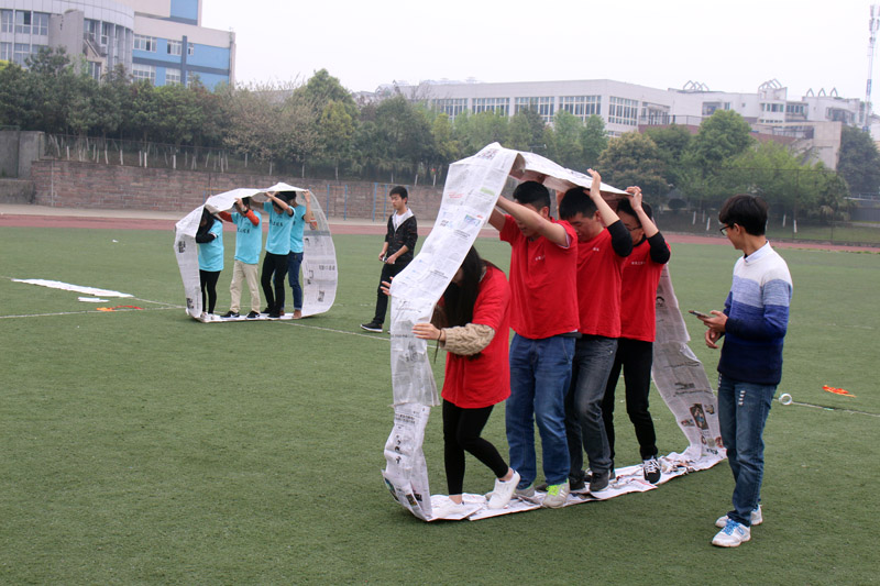 活动开幕式上,主持人张馨对本次活动进行了介绍,然后在张启才老师做了简单的讲。活动从同心圆游戏开始,在第二个团队接力游戏时,同学们的状态渐入佳境。通过游戏活动,成员之间相互更加熟悉,沟通协调也更加顺畅;有效增强了集体配合默契程度。模仿成语游戏、篮球友谊赛等活动又让成员认识到了团结的重要性。两个多小时后,素质拓展活动在一片欢声笑语中结束了。