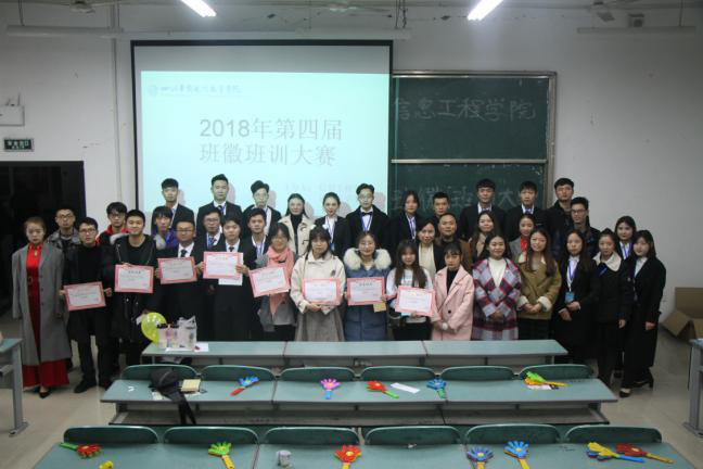 2018年11月26日,在这秋末初冬的季节,信息工程学院师生齐聚教学楼103教室,参加信息工程学院第四届班徽班训大赛。信息工程学院的辅导员、部分教师代表以及18级各班学生代表参加了本次大赛。