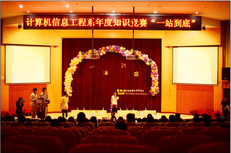 422 6点,我系于学术报告厅举办了第二届年度知识竞赛“一站到底”。本次知识竞赛由我系学生权勇、刘里平主持,活动除我系主任周勇、团总支书记何老师与全体学生参加之外,学生处处长邓忠,经管系主任涂捷,工管系主任谭征与院团委学生会成员也出席了现场。