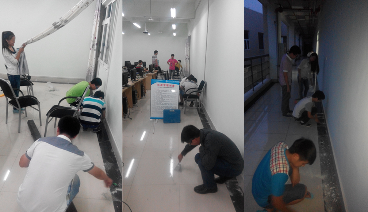 9月22日晚,橙子游戏班同学齐心协力在专业机房内打扫清洁卫生,整理桌椅,铲除装修时残留的油漆。随耗时2个小时,但同学们看到自己的专业实训环境越来越干净、整洁,心情颇为愉悦。