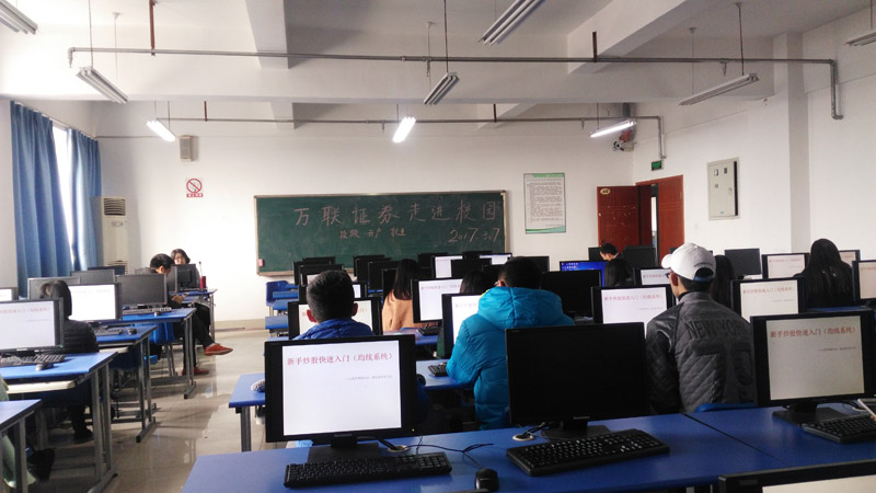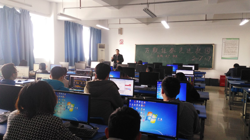 3月7日上午,万联证券清江东路营业部李总经理一行来到我校,为2015级证券与期货专业同学开展了一次生动、实用的实训教学活动。