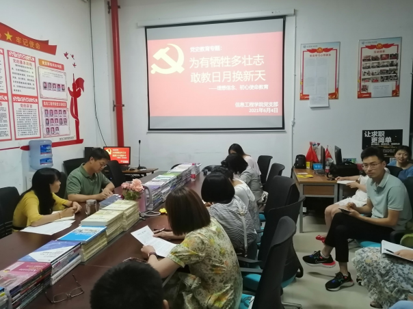 为积极探索党课教育的新途径,发挥和体现党员在党课教育中的主体作用,进一步增强基层党组织的凝聚力和战斗力。2021年6月4日下午14:00信息工程学院党支部在西河校区明德楼动漫中心党员活动中心开展了“奋斗百年路 党员讲党课”主题活动。活动由支部副书记张启才同志主持,全体教职工参加。