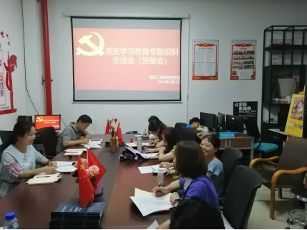 2021年7月12日下午14点在信工学院支部在明德楼111党员活动室召开召开党史学习教育专题组织生活会(预备会),支部书记李凡同志主持会议。