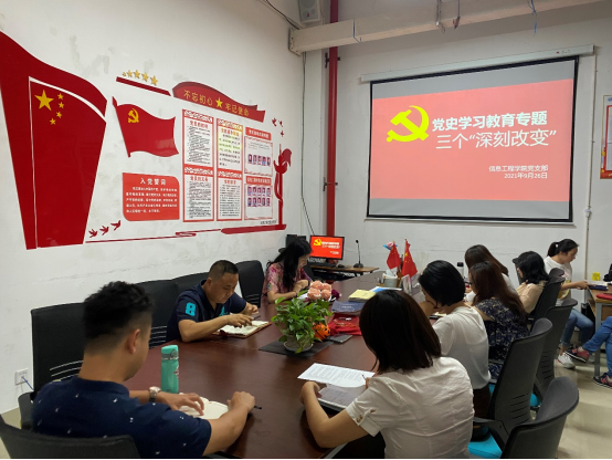 2021年9月26日下午,信工学院党支部开展习近平总书记“七一”重要讲话专题研讨,主题为从“三个深刻”回望百年党史,活动由支部书记李凡同志主持。