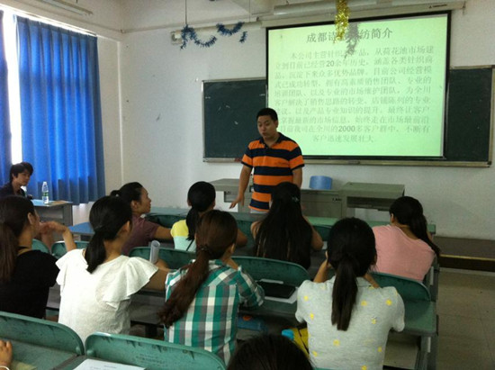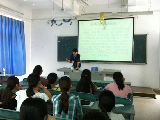 6月16日,成都诗意针纺慕名前来,在教学楼206举行专场宣讲并选拔人才,受到经济管理系副主任邹鹏的热烈欢迎。