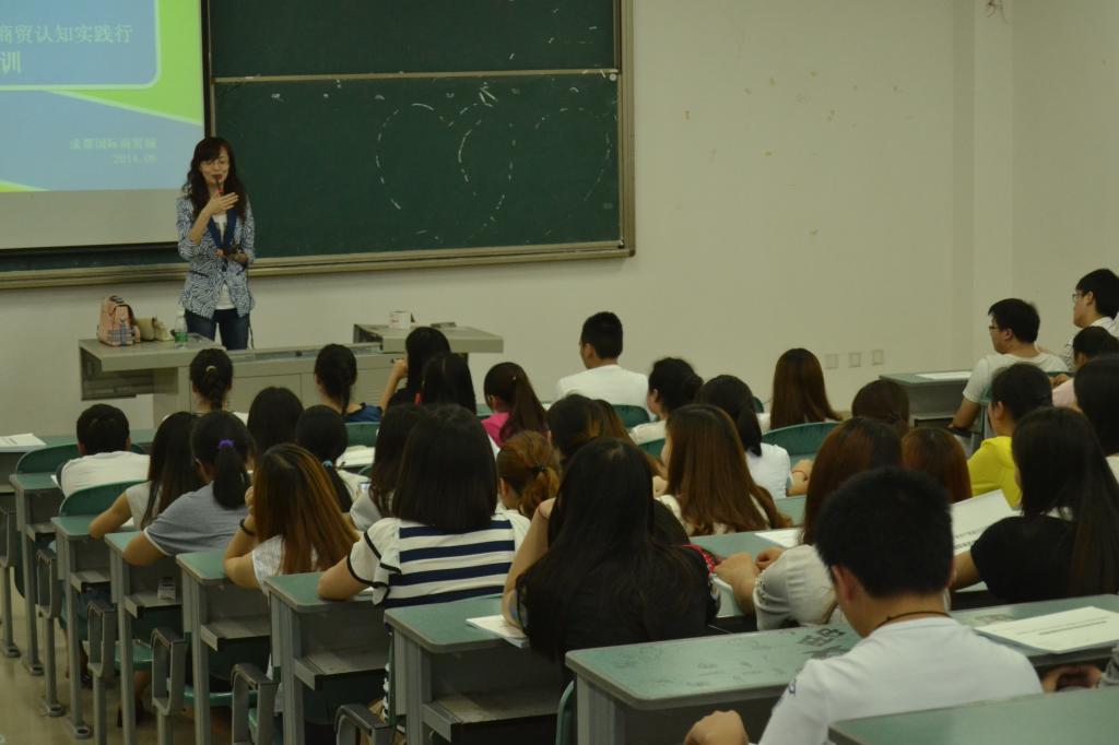 6月26日下午,伊厦成都国际商贸城总经理赵丽华女士应我院邀请,在教学楼107为经济管理系市场营销和电子商务的学生开展了有关于“2014四川大学生暑期商贸认知实践行”活动的培训讲座。我院副院长康敏、经济管理系主任涂捷出席了本次讲座,对赵总和随行人员表示欢迎和感谢。