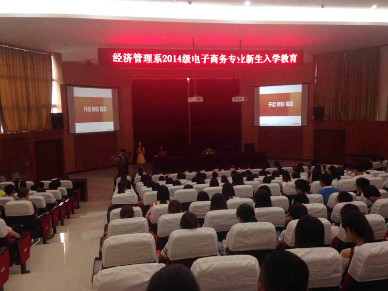 为了培养14级电商新生对本行业的认知,激发同学们对电商专业的学习热情,9月2日下午,成都翼淘商贸有限公司的总经理冷雨晴,淘宝大学讲师迟帅应邀为我院电子商务专业新同学们带来了一场精彩的讲座。本次讲座在我院学术报告厅举行,电子商务专业教研室老师及电商14级新生共计两百余人参加。