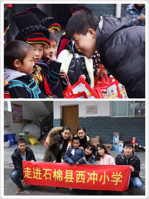 12月2日,经济管理系党员教师代表阿什尔聪、杨曼琳带领志愿者同学们前往雅安市石棉县栗子坪乡西充小学开展公益活动,受到该校沈校长的热情接待。石棉县是雅安市4个享受少数民族待遇的县区之一,该县长期以来,受经济条件、地理环境、思想观念等因素制约,该县少数民族儿童入学率和教育质量,一直是困扰教育发展的难题。栗子坪乡西充小学有三个年级,分别是学前班、一年级及二年级,共有33名彝族小学生,其中有不少留守儿童、孤儿及残疾儿童。崎岖的山路阻挡不了送关怀的脚步,初冬的寒意冷却不了送温暖的心,我们为小朋友们带来牛奶饮品、文具、体育用具及募捐的书籍、玩具等,志愿者们带领小朋友们唱歌、跳舞、做游戏,现场洋溢着一片欢乐和谐的气氛。