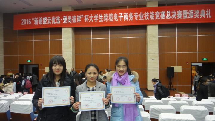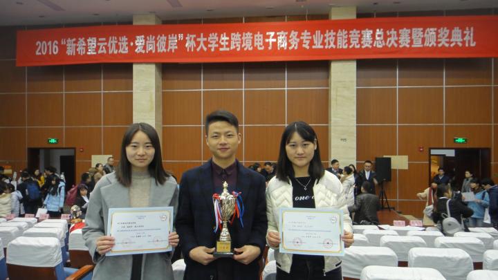 12月23日上午,2016年“新希望云优选·爱尚彼岸”杯大学生跨境电子商务技能大赛总决赛在重庆落下帷幕。川渝地区39所本科和高职院校350支队伍参加了该次大赛。我院电子商务专业派出5支队伍、商务管理派出4支队伍参赛。我院电子商务专业219队、商务管理的艾诺队荣获最佳实战团队一等奖,商务管理的速诚队荣获最佳实战团队二等奖;艾诺队荣获团队综合一等奖,219队荣获团队综合二等奖;艾诺队荣获最佳设计团队二等奖;艾诺队的卢武和219队的张礼辉荣获最佳实战个人一等奖;速诚队的黄凡荣获最佳实战个人二等奖;兰慧琳、张珏莹、刘媛媛和王艳红荣获最佳实战个人三等奖。
