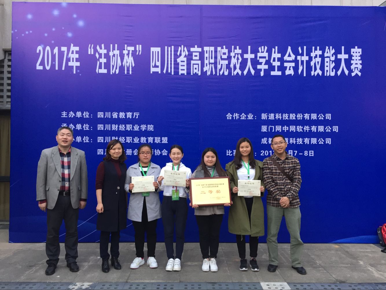 4月8日,经济管理系会计专业的朱梦臻、刘海玲、李世琳和康翔钦四名同学代表我院参加了由四川省教育厅主办的2017年“注协杯”四川省高职院校大学生会计技能大赛。此次比赛有来自全省48所高职院校的学生参加,经过激烈的角逐,我院学生在全省48所高职院校中排名第六,获得二等奖的优异成绩。
