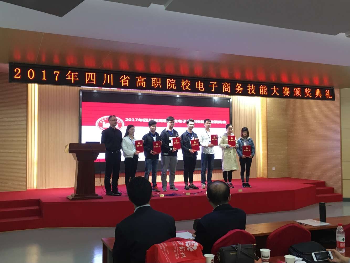 2017年4月9日,我院电子商务2015级学生兰惠琳、苏晓、程萍、赵元四名学生在四川省电子商务技能大赛中取得第二名的优异成绩。