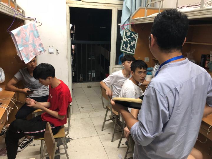 当晚,新生辅导员召开班会,为2018级新生分发学生手册,详细解读校规校纪,要求新生注意安全。随后,我院全体教职员工走访新生宿舍,了解新生入住情况,老师们亲切地询问新生们到校生活上存在的问题,了解同学们家庭和家乡情况、详细询问大家到校后的感受及适应情况,提醒同学们注意人身、财产安全,注意防范不明人员,有问题及时向宿管或者辅导员反应。针对同学们提出的问题,老师们一一给予解答,新生们对学院的关心纷纷表示感谢,一系列人性化服务举措赢得了新生和家长的好评,让他们感受到了学院浓浓的人文关怀。