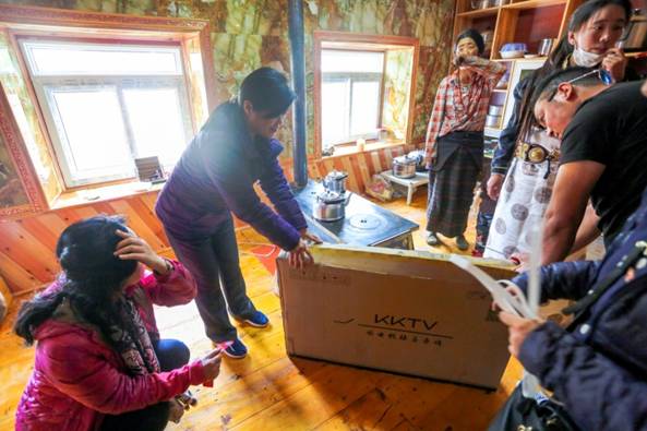 经管学院党支部党员代表深入格西村村民家中,帮助安装液晶电视,了解村民生活、居住情况、小孩读书情况、家庭收入及主要来源、对扶贫政策的看法以及对驻村干部的帮扶评价等。格西村村民昂旺罗布说:“我们以前住在山上,属于游牧,山上条件艰苦。现在党的政策好,搬到山下了。政府给了补助,修建房屋有了一定补贴。驻村干部为乡亲们办了很多事情,也感谢华新学院老师们给我们送来了温暖。”