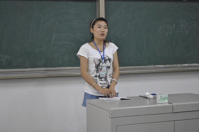 图片三:新任学生会主席李新雪同学进行就职演讲