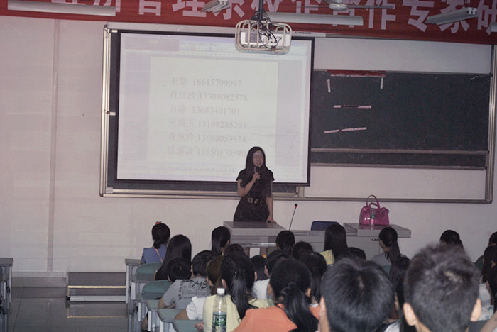 8月27日下午,电子商务教研室主任王慧副教授对2013级新生详细介绍了本专业发展趋势、课程结构、人才培养模式等专业信息,鼓励同学们在踏入大学校园后应该树立新的目标,培养自主学习和动手能力,为大三参加毕业实习打下牢实的基础。随后,肖红波博士等教研室专职老师们纷纷开展主题演讲,让同学们充分了解本专业的就业前景以及对大学学习的规划。